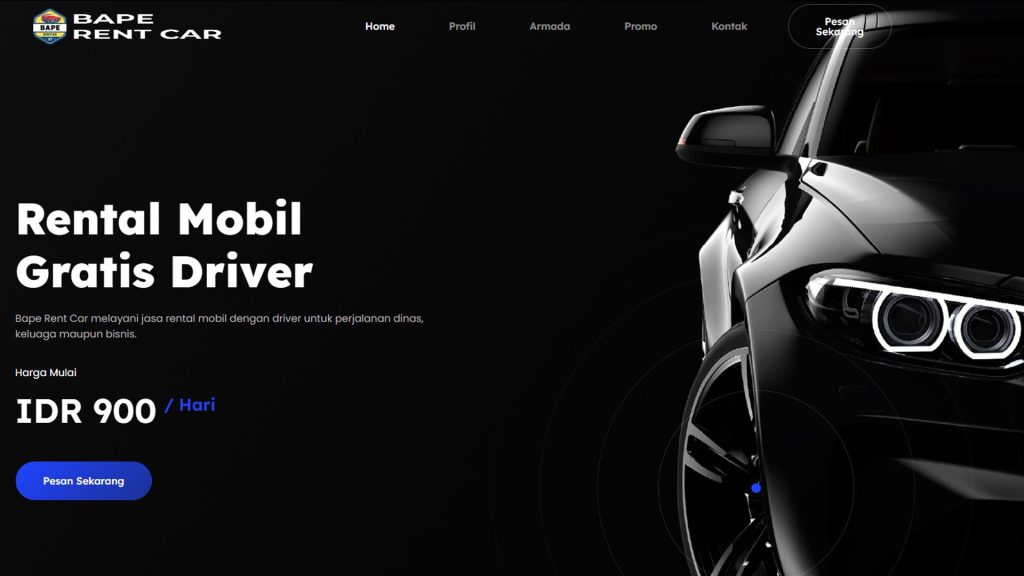 Pembautan website landing page rental mobil bape rent car Depok, dengan feature Whatsapp Chat.